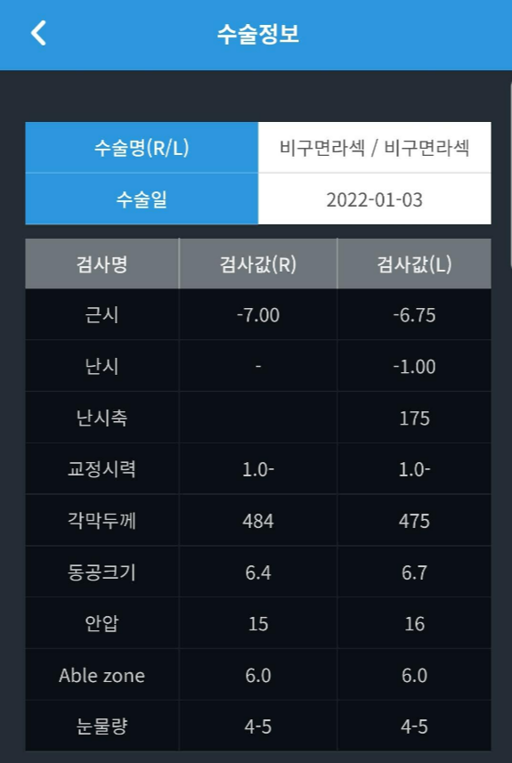라섹 당일에 보호렌즈가 빠지는 헤프닝이 있었지만