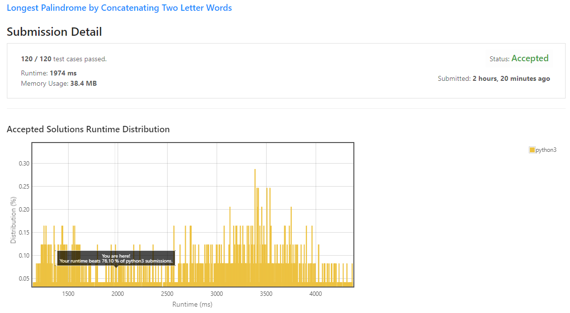 LeetCode 1706. Longest Palindrome by Concatenating Two Letter Words