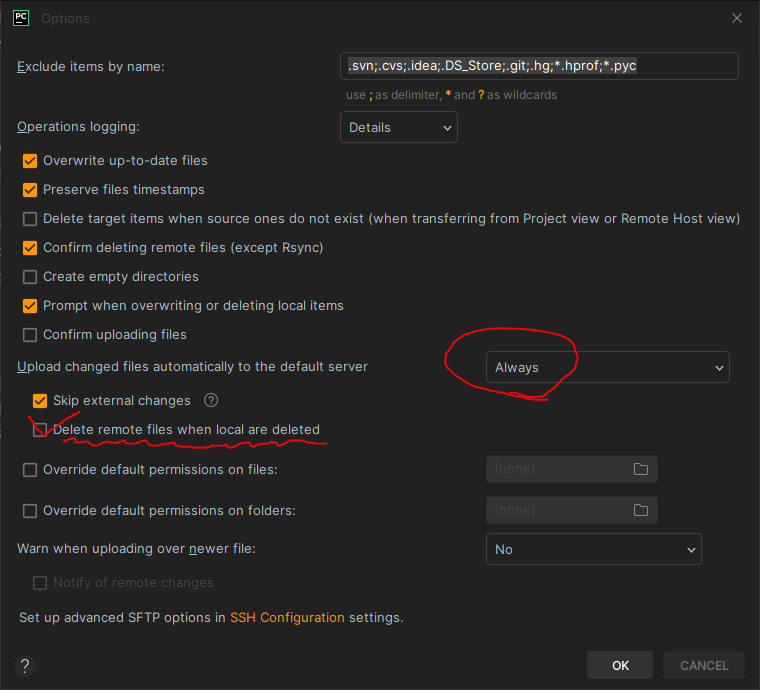 Delete remote files when local are deleted를 체크하면 되는데, 이게 처음에 비활성화 돼있을 것이다.