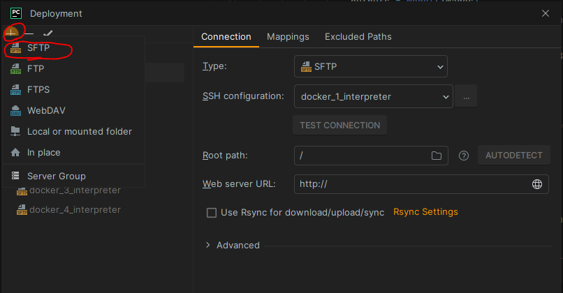 이후 +를 누르고, SFTP로 연결한다. (이건 서버마다 다름!)