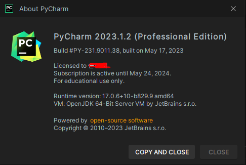 About을 누르면 이러한 라이센스가 뜨는데, subscription 날짜가 종료되도 연장된다고 한다..