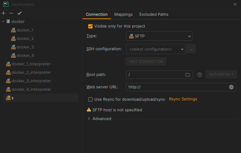 이후 Mapping tap에서 server에 있는 프로젝트를 mapping 해주면 설정이 끝난다.
